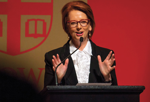 “Asia’s rise is the opportunity of the century,” declared former Australian prime minister Julia Gillard at the start of the ninetieth Stephen A. Ogden Jr. ’60 Memorial Lecture on International Affairs in March. What is striking, Gillard said, is the speed of Asia’s development. She noted that while nineteenth-century Britain required seventy years to quadruple its economy, China’s economy has grown twenty-fold in the last twenty-five years. “This is industrialization at warp speed,” she said.