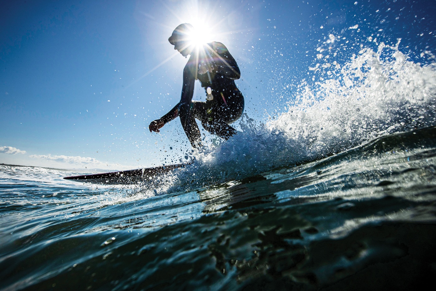 Photographer Sachi Cunningham ’94.5 grabs a 25-pound camera and hangs out in the water beneath cresting 60-foot waves, getting pounded, churned—and getting the shot.